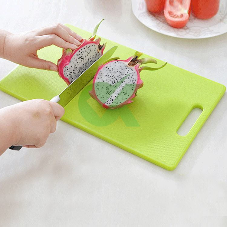 聚乙烯砧板,在继承了老一代厨房砧板的特点后,加强了抗菌特性,具有优良的杀菌功能,且克服了以前塑料砧板易碎、变形的缺点。增强了其韧性、增加了实用性,做到了真正的无毒、抗菌、使用。有效的延长了该产品的使用寿命,对客户做到了真正的高品质、高质量且经济实惠。经有FDA认证报告(报告编号:FDD01F001131001C)。